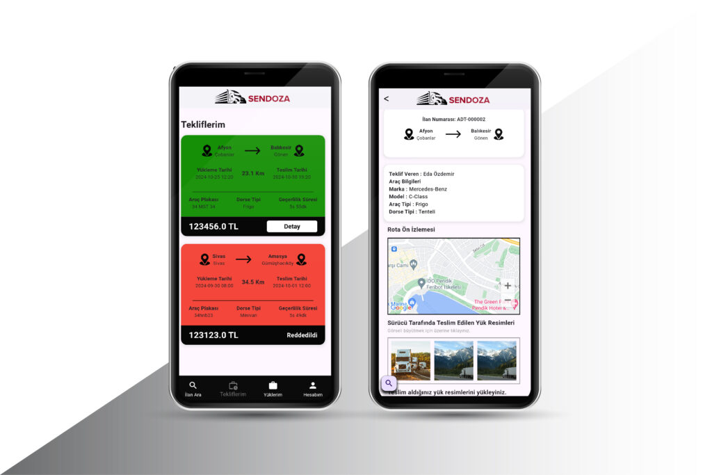 Özelleştirilebilir Bildirimler: Yük alımı, teslimat ve teklif durumu gibi önemli anlarda kullanıcıları bilgilendiren etkili bildirim tasarımı.